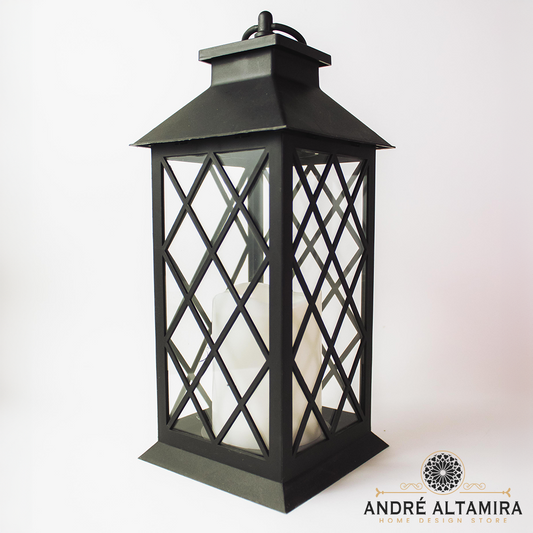 FAROL NEGRO CON VELA LED INCORPORADA