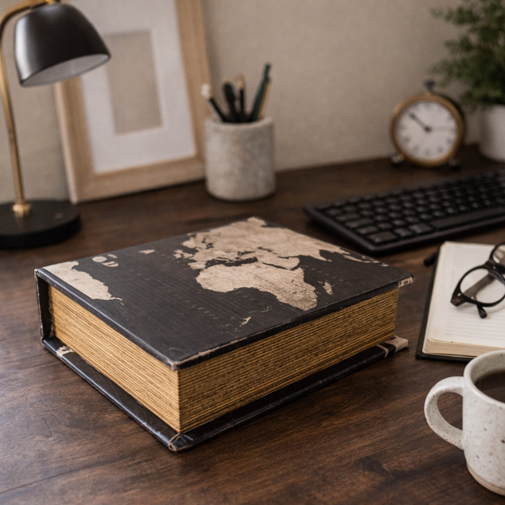 CAJA TIPO LIBRO MAPA MUNDI NEGRO