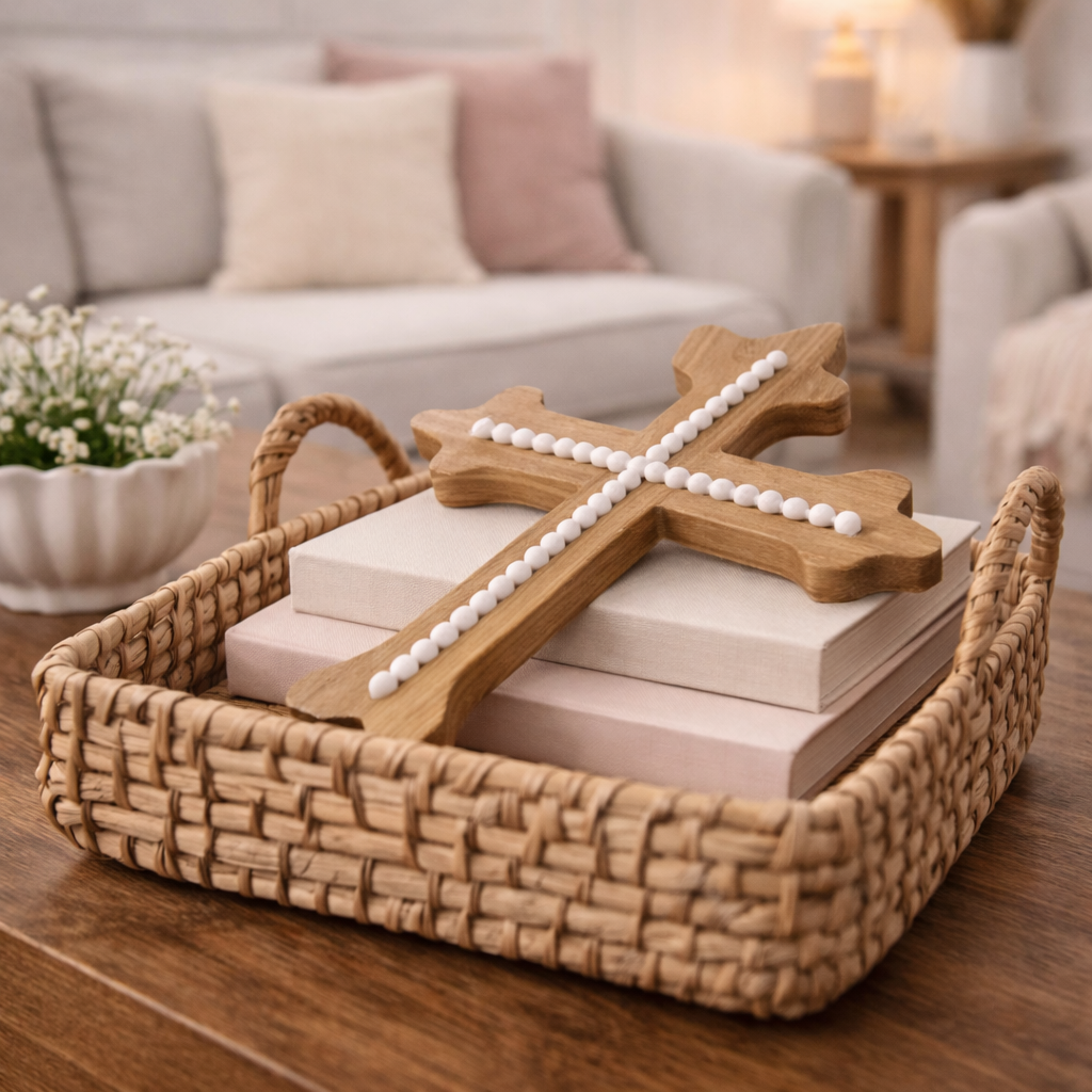 Cruz de madera natural con relieve para pared