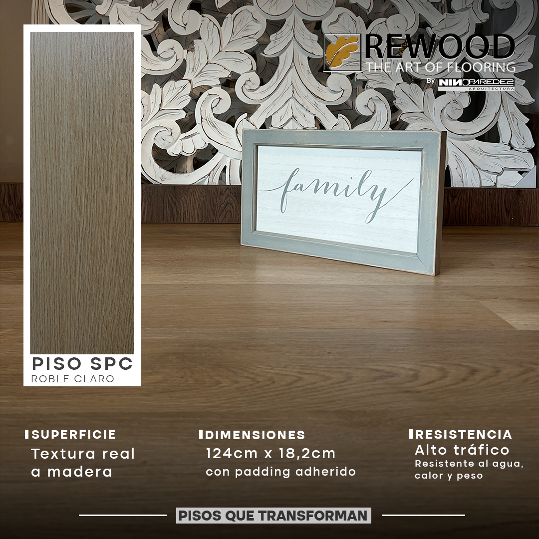 El piso SPC Roble Claro aporta carácter y calidez a tus espacios, combinando diseño